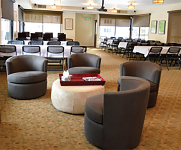 The Chateau Roaring Fork has a recently remodeled 1,100-square-foot conference room with newly installed audio/video equipment. Room amenities include a full kitchen with dishwasher, internet, two TVs, and a projector with screen. This facility can accommodate up to 75 people. Download more information here.