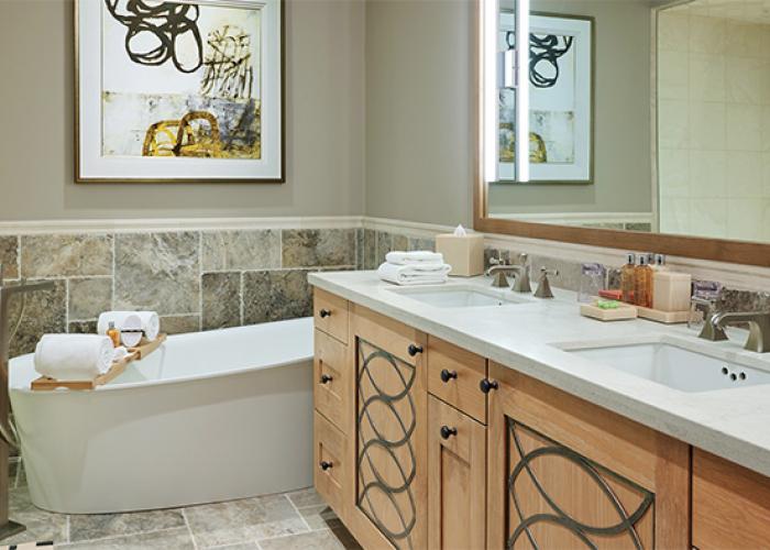A: The Dancing Bear is a boutique property with an elevated perspective on luxury. Developers did not stop with just luxury interior finishes; they designed the entire experience to satisfy discerning tastes. The property features more anticipatory amenities than the other nationally branded properties with a wine cellar, screening room, spa facility and—the crown jewel—the rooftop deck and hot tubs.